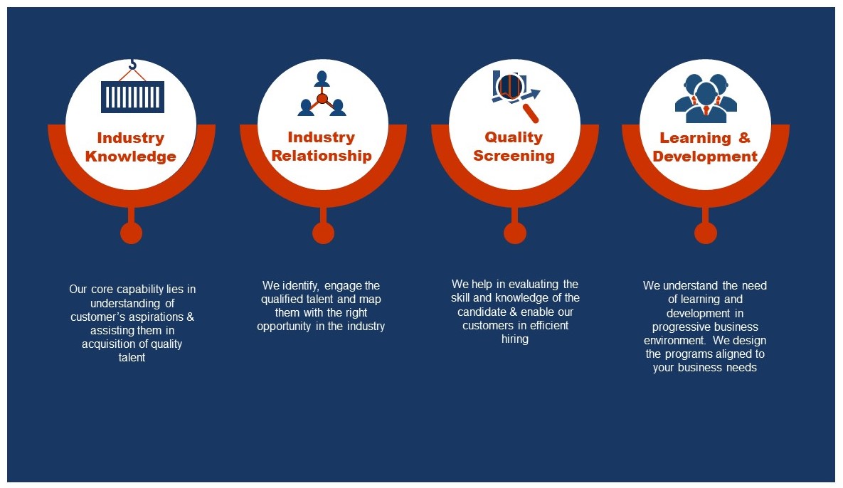 We love to call ourselves “the go-to place” for the major challenges faced by supply chain industry in terms of - finding talent, retaining talent and developing talent. We understand completely that leadership at the top seeks measures for assessing the best-fit talent, engaging the talent and managing the change. Along with this, leaders strive to keep the talent motivated for achieving the best performance levels. All these factors keep the logistics professionals on their toes while the industry goes through a change. To keep you ahead of times, our team brings to you the solutions, derived from the experience of its seasoned leaders who have faced similar challenges during their combined professional journey of more than 50 years and know how important it is to address these concerns.